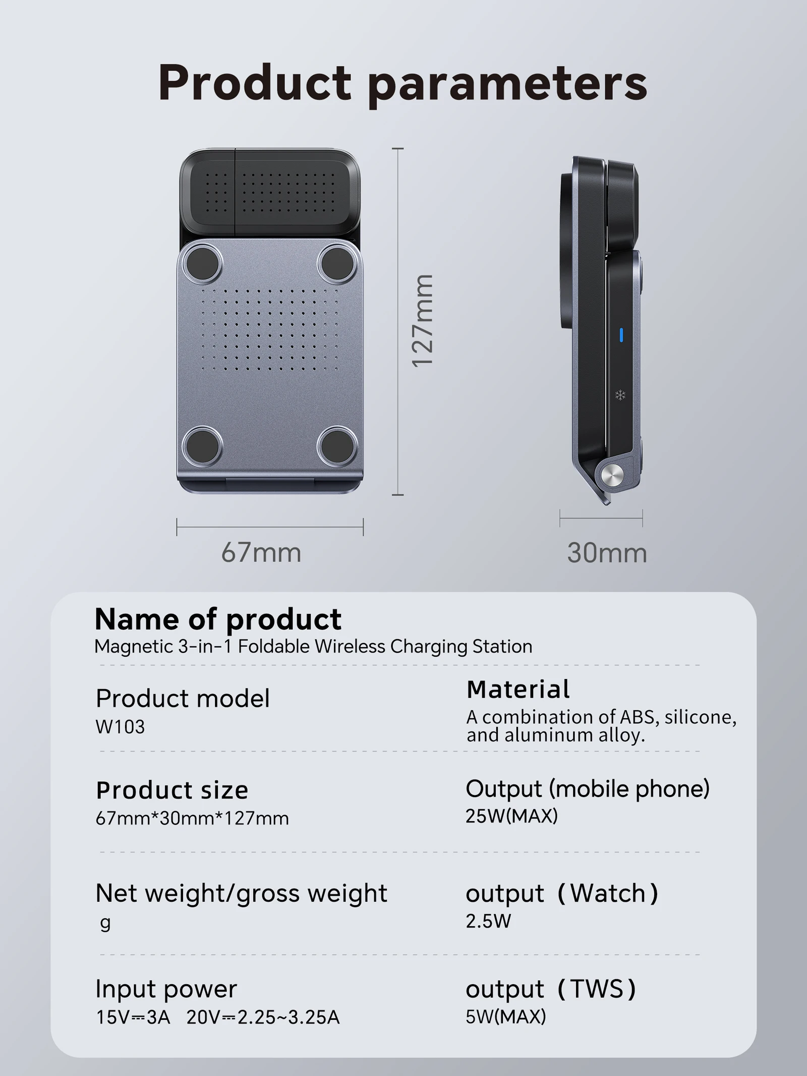 qi2.2 25W 3 in 1 magnetic chargeur sans fil Noiseless TEC senmiconductor cooling fan technology, metal materials